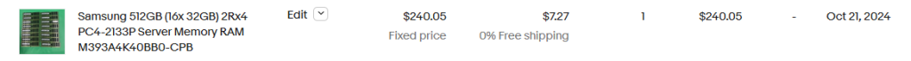 16x32gb ddr4 sticks for 250 bucks. thats.. uhh…. hmm.. 15 dollars a stick.. yea….